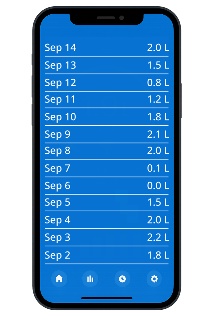 Connect using Bluetooth to track water Consumption and change settings of the device.
