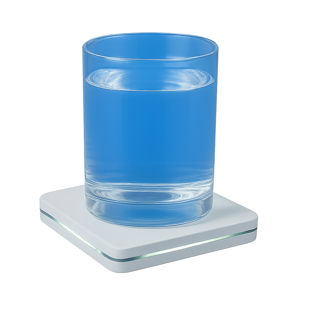 Position a cup of water on the device; it will change to green, indicating that the cup has been recognized.